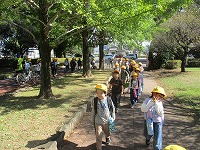 本日は待ちに待った生活科見学に行ってきました。子供たちは、色々な木の実や葉っぱ等をたくさん集め、いっぱい遊びました。また、お昼ごはんに作ってもらったお弁当を嬉しそうに食べる様子が見られました。保護者の方におかれましては、本日まで御協力いただきありがとうございました。