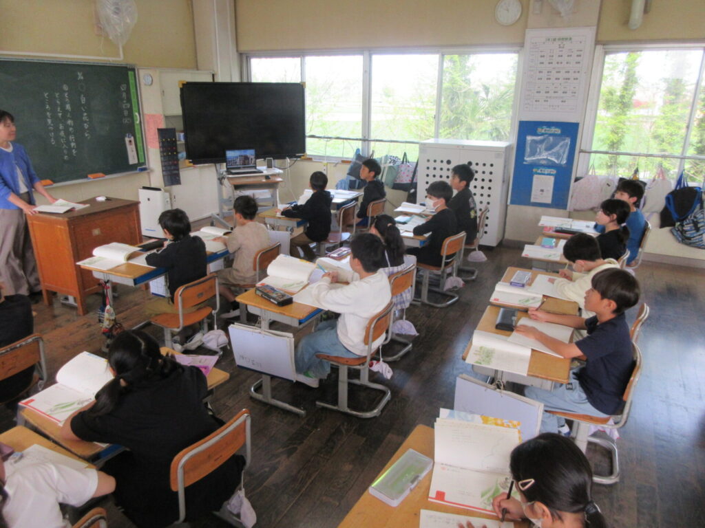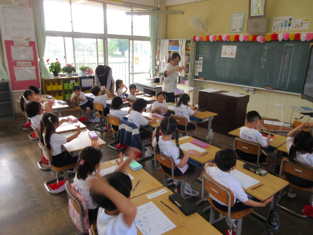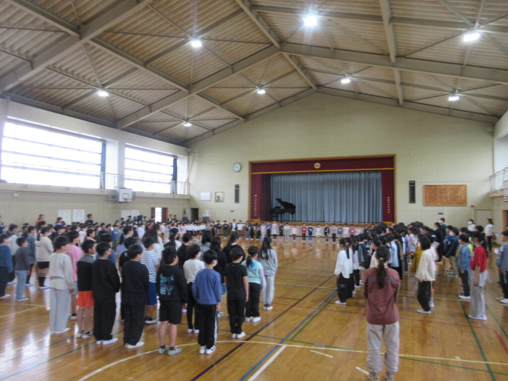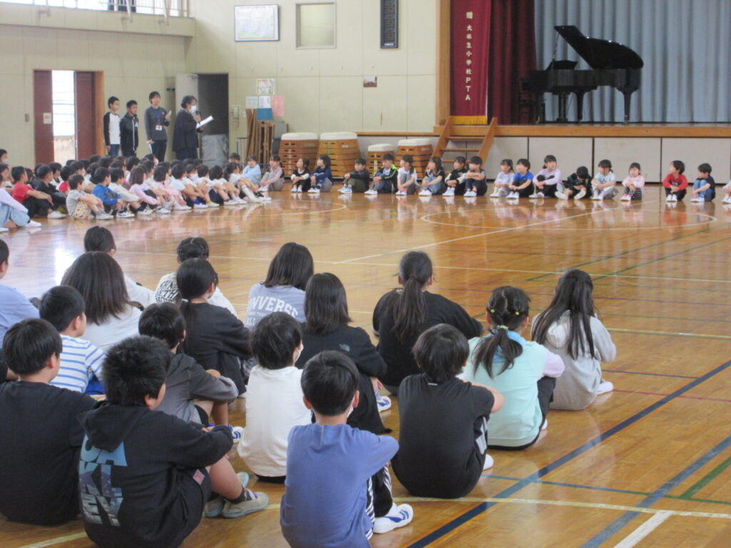 「いよいよ小学校生活がスタートしましたね。楽しく遊んだり、勉強したりしましょう。わからないことは何でも上級生にきいてください。」(6年生代表 迎えることば要約)