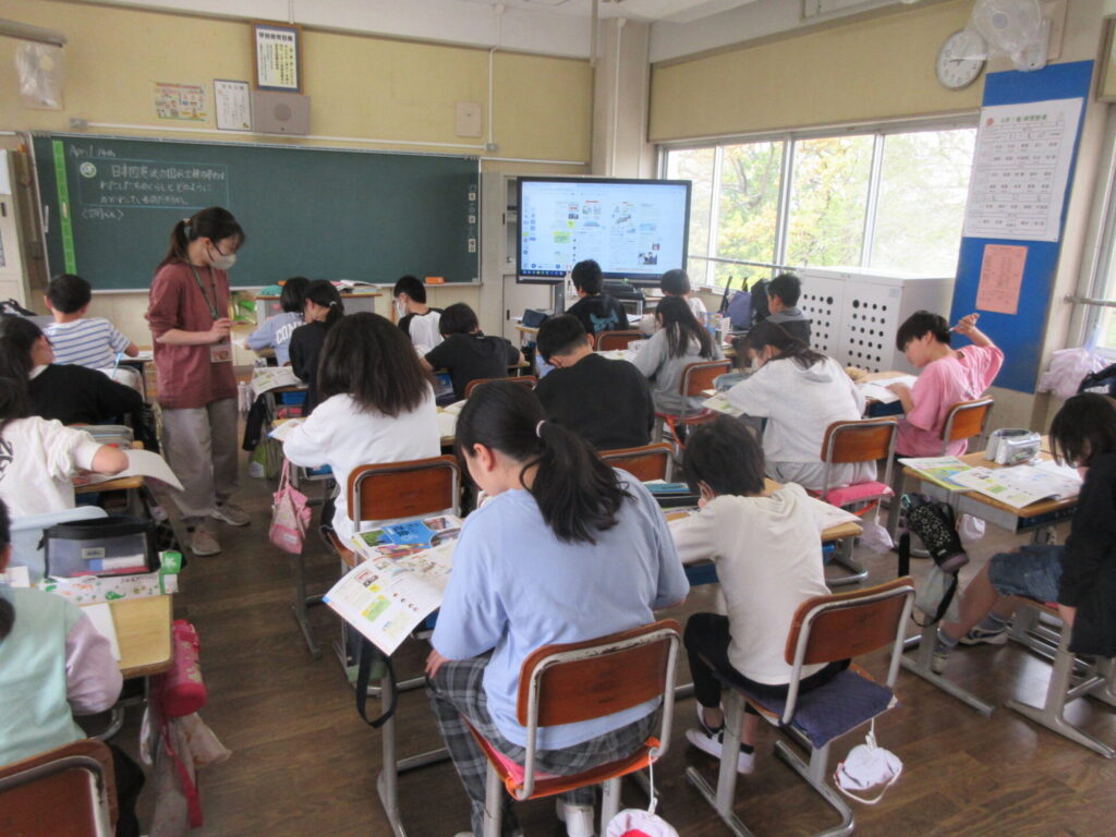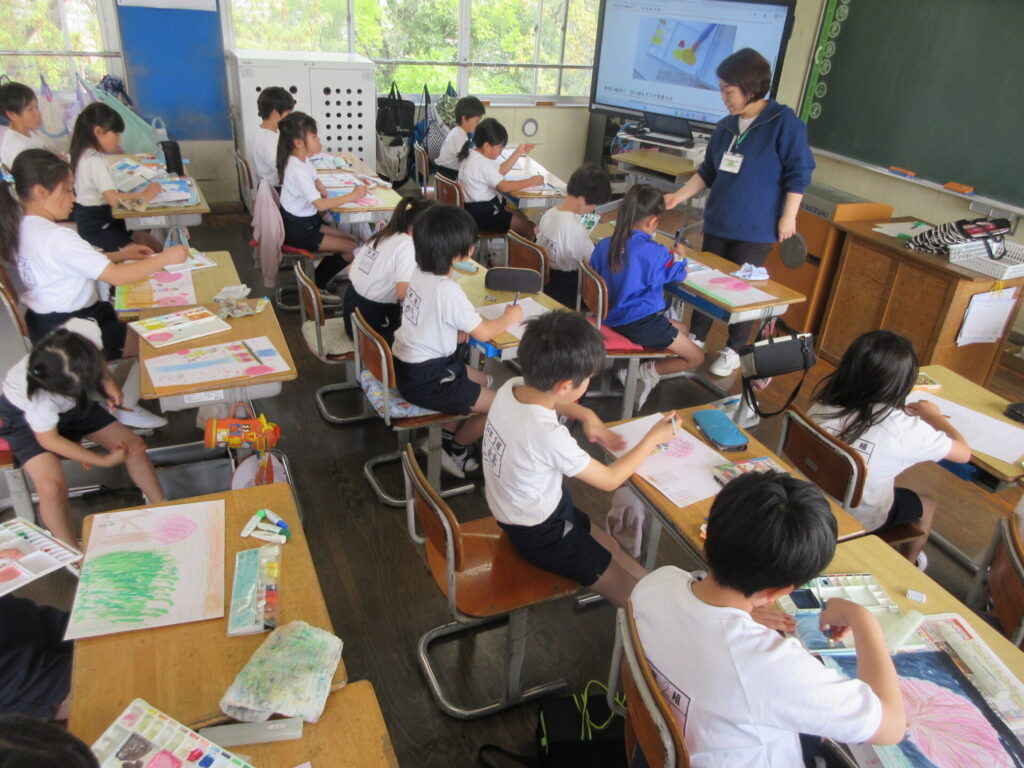 新しいタブレット端末を初めて使ったり、絵の具を使ったりしているクラスもありました。