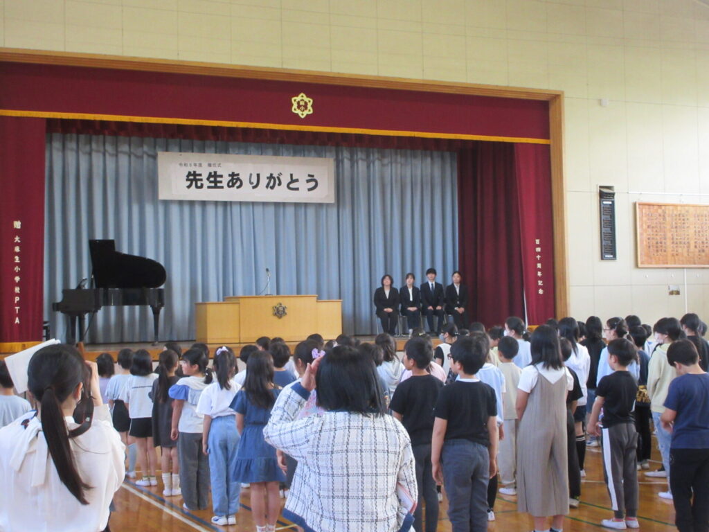 午後には離任式があり、異動された先生方にお手紙と花束をお渡ししました。
