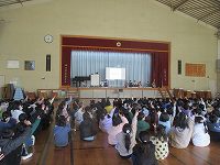奉仕委員会が、福祉体験をしてくれました。 19日は「ボッチャ」を行いました。白い球に、自分の球が近づくように投げるチーム競技です。 次の「ストラックアウト」も楽しみにしています。